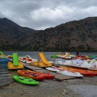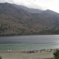 Jezioro Kournas to jedyne słodkowodne jezioro na Krecie oddalone o kilka km od miejscowości Kavros. Uparliśmy się, by je zobaczyć w dniu, gdy pogoda nie rozpieszczała za bardzo i padał deszcz, dlatego klimat zdjęcia na pierwszy rzut oka nie kojarzący się z Grecją.