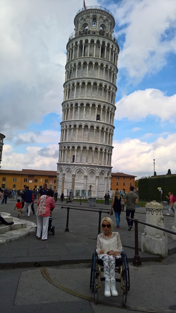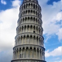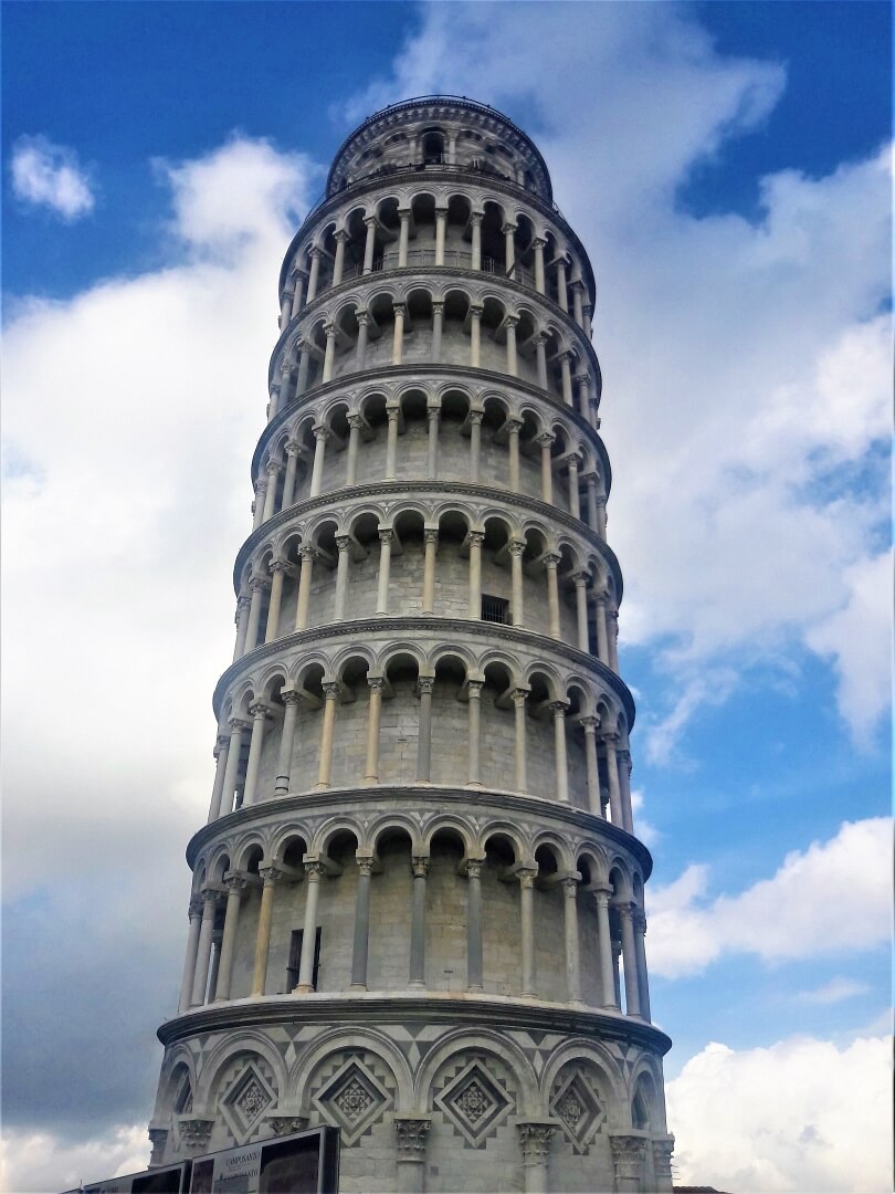 Krzywa Wieża to po prostu dzwonnica, której budowa trwała od 1173 do 1350 r. Już w krótkim czasie po wzniesieniu pierwszych trzech poziomów wieża zaczęła się lekko przechylać. Próbowano zatrzymać ten proces na różne sposoby, m.in. stosując na wyższych poziomach różną wysokość kolumn, stąd też po stronie południowej są one wyższe niż po stronie północnej.Wieża chyliła się jednak coraz bardziej i dopiero ostatnio udało się ten proces zahamować. Pizańska dzwonnica jest jednak unikatowa nie tylko ze względu na swe skrzywienie, ale przede wszystkim na oryginalną konstrukcję architektoniczną, nie spotykaną w innych miastach Toskanii. Powiem szczerze, że dla mnie kłopot z wieżą jest taki, że sama w sobie, poza tym, że krzywa, nie jest wg mnie szczególnie fascynująca. Budynek całkiem ładny, ale tylko dlatego ciekawy, że krzywy
