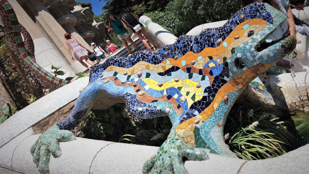 Położony nieco na uboczu Parc Guell to jedno z najbardziej znanych i charakterystycznych dzieł Gaudiego. W zamierzeniu E. Guela – bogatego kupca – obecny Parc Guell miał być ekskluzywną dzielnicą czy wręcz miastem-ogrodem. Ostatecznie z ambitnych planów niewiele wyszło, ale park stał się wielką atrakcją dla turystów.
