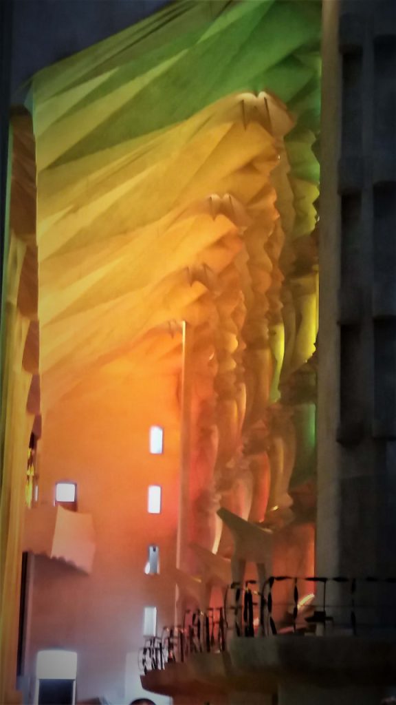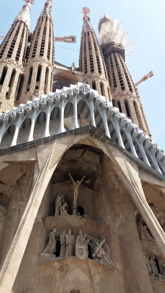 La Sagrada Familia czyli Przebłagalna Świątynia Świętej Rodziny to monumentalna bazylika, o której chyba każdy czytał czy słyszał. Symbol Barcelony, choć od 1882 roku jest ciągle w trakcie budowy! Sagrada jest uznawana za największe dzieło architekta Gaudiego, który poświęcił jej znaczną część swojego życia. Zdania na temat tej osobliwej budowli są skrajnie różne, jednak nie ma najmniejszych wątpliwości, że jest to obowiązkowy punkt podczas zwiedzania miasta. Dla mnie osobiście przereklamowany. Weszłam co prawda bez kolejki (taki mały przywilej bycia na wózku ), ale normalnie szkoda byłoby mi czasu na czekanie za biletem w kilometrowym ścisku. Wnętrza świątyni robią ogromne wrażenie wrażenie, ale trudno skupić się na mnogości detali wśród tylu zwiedzających. Nigdzie nie widziałam tak pięknych witraży i gry światła przez nie wpadającego…