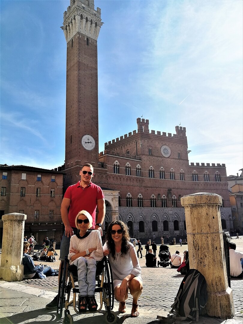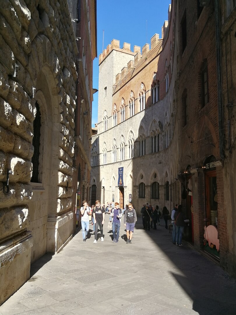 Całe miasto zbudowano wokół Piazza del Campo i zostało pomyślane jako dzieło sztuki, które wtapia się w otaczający krajobraz. Plac otaczają nieco mroczne średniowieczne kamienice z ciemnej rudej cegły. Jednakże niezwykła architektura tego miasta to nie wszystko. Panuje tu specyficzna – można by rzecz toskańska – atmosfera. Na Piazza del Campo przesiaduje tłum ludzi. Często leżą oni na ceglanej posadce, odpoczywają, jedzą lody, czytają książki lub rozmawiają z przyjaciółmi. Widok tak dużej ilości ludzi beztrosko relaksujących się na brukowanym placu jest naprawdę niezwykły!