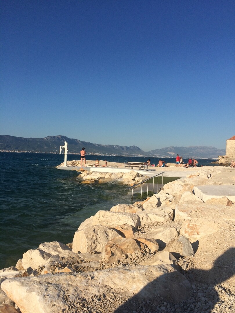 Wybrzeże w okolicach Trogiru ma różne oblicza. Wyścielone żwirem zatoki i zatoczki, miejscami plaże piaszczyste, a przede wszystkim skały, pozwalają wybrać właściwie każdą scenerię kąpieli w wodach Adriatyku.