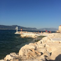 Wzdłuż wybrzeża spacerujemy promenadą, z której rozciąga się widok na morze i na wyspę Čiovo. Oglądamy jachty i statki wycieczkowe.